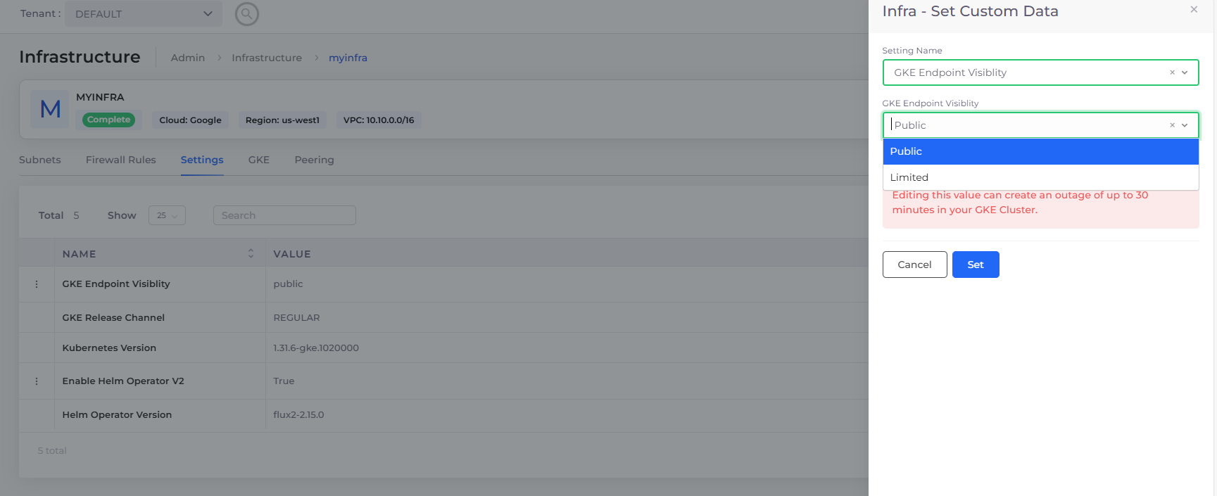| **GKE Endpoint Visibility** | <p>Set as Private to access a GKE Cluster using a private endpoint, with access facilitated through DuploCloud VPN. <br></p> | Public        |