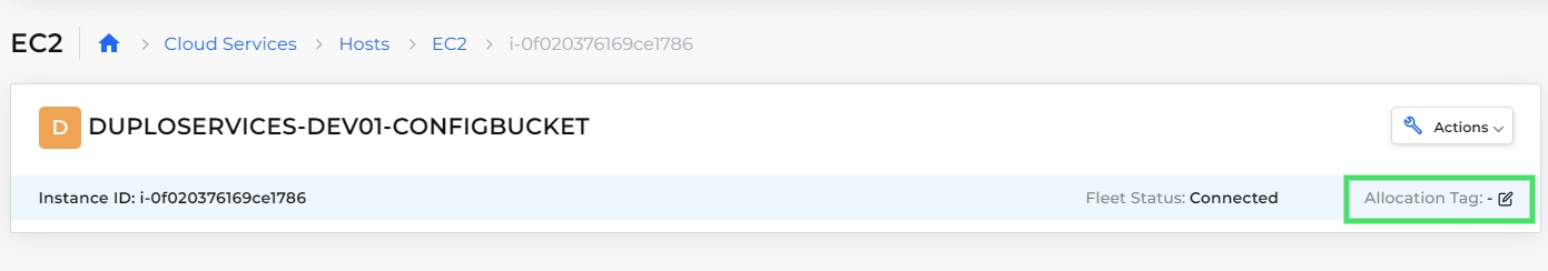 In the DuploCloud Portal, navigate to the **Add Service** or **Edit Service** page, and enter a tag name in the **Allocation Tag** field (see the [allocation tag rules](#allocation-tag-rules) for details). When the Service runs, DuploCloud will attempt to select a Host with a matching allocation tag. To pin the Service to run on a specific Host, apply matching allocation tags to the Host and Service.&#x20;