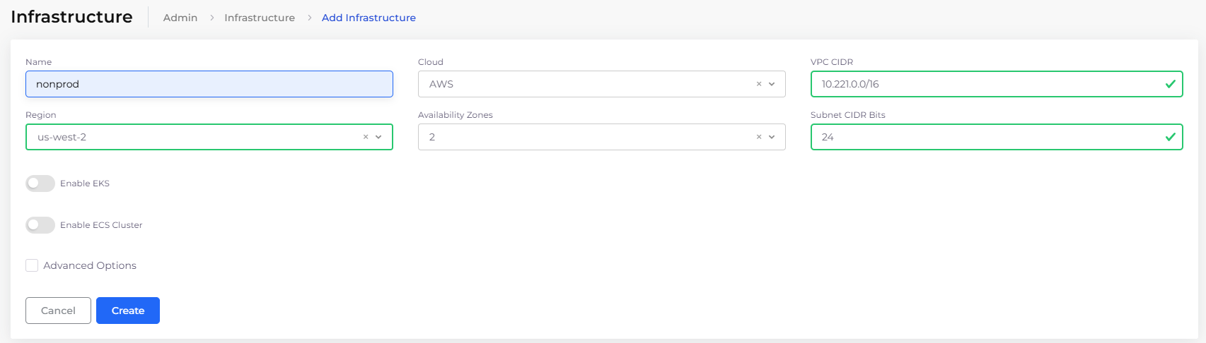 <div align="left"><figure><img src="https://2471407984-files.gitbook.io/~/files/v0/b/gitbook-x-prod.appspot.com/o/spaces%2F68cb0s9ce5UIUKWPuYs8%2Fuploads%2FBALuIq7idVZLdhw8AzN1%2FScreenshot%20(663).png?alt=media&#x26;token=dfed6880-a698-4773-b676-d3cc5113b484" alt=""><figcaption><p><strong>Add Infrastructure</strong> page<br></p></figcaption></figure></div>
