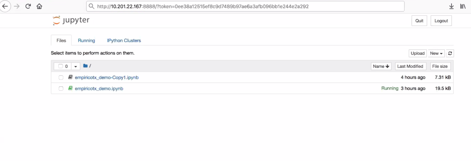 In your browser, navigate to the Jupyter URL and you should be able to see the UI.