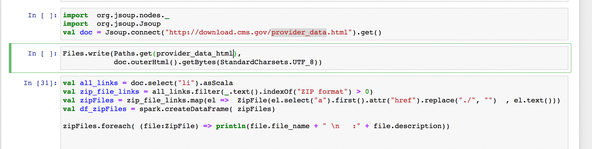 In this following we will create a Jupyter notebook and show some basic web scraping, using Spark for preprocessing, exporting into schema, do ETLs, join multiple dataframes (parquets), and export reports into MySQL.